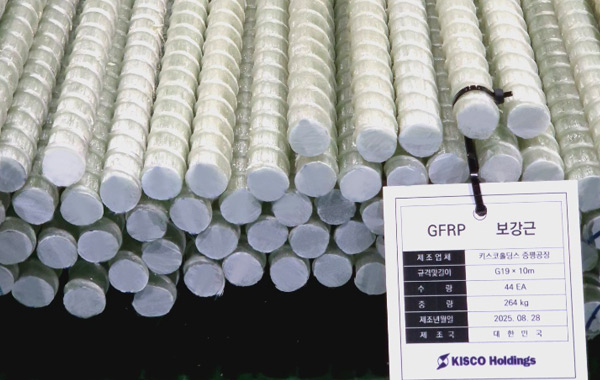 CREAR Bar제품은 유리섬유로 강화된 봉강 형태의 복합소재입니다.KISCO 홀딩스의 ‘CREAR BAR’는 철근 대비 고강도, 내부식성, 초경량의 장점으로 구조물의 수명과 품질 향상에 적합한 건설 자재입니다.